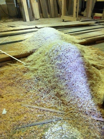 Rather uneventful day in the shop. Turned a few styluses to get started and then spent the rest of the day planing, jointing, resawing, sanding and generally creating a mess. The pile in the picture below is a mixture of cherry, maple and poplar shavings coming out of my planer.