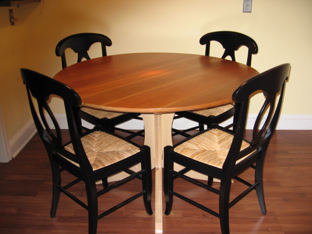 The Gate-Legged table has a leaf on each end of the table that is supported by a leg that swings out like a gate. The hinge is constructed from solid wood. When fully opened, the table will comfortably seat 6. Each leaf is designed to accommodate dining for 2. The drop leafs allows this table to easily shift from an intimate dinner for 2, to a table for a family of 4, to a table to entertain a small dinner party of 6.
