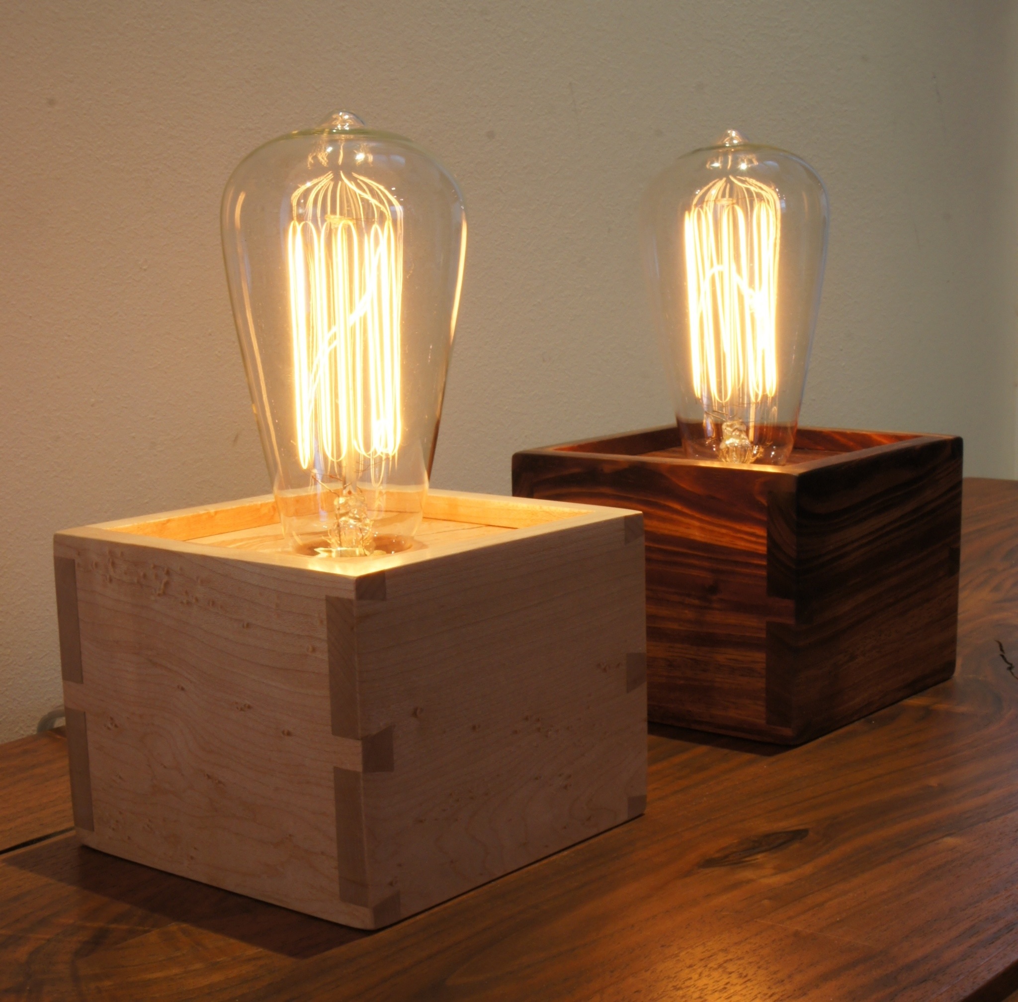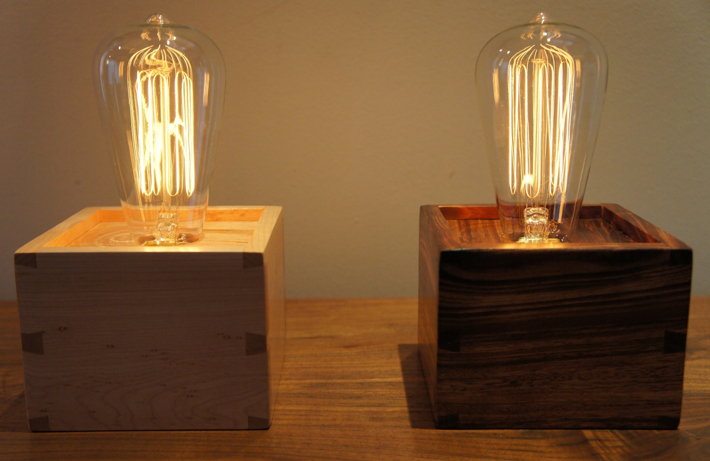 With all of the prior patch work completed on the boxes, I was able to finish sanding up the two small dovetail boxes that I was working on. Assuming that there is enough room on the interior for a dimmer switch these will both become single bulb Edison lamps. The only thing left that I could screw up would be cutting the hole for the light socket. Hopefully this will be finished up after one more shop trip.