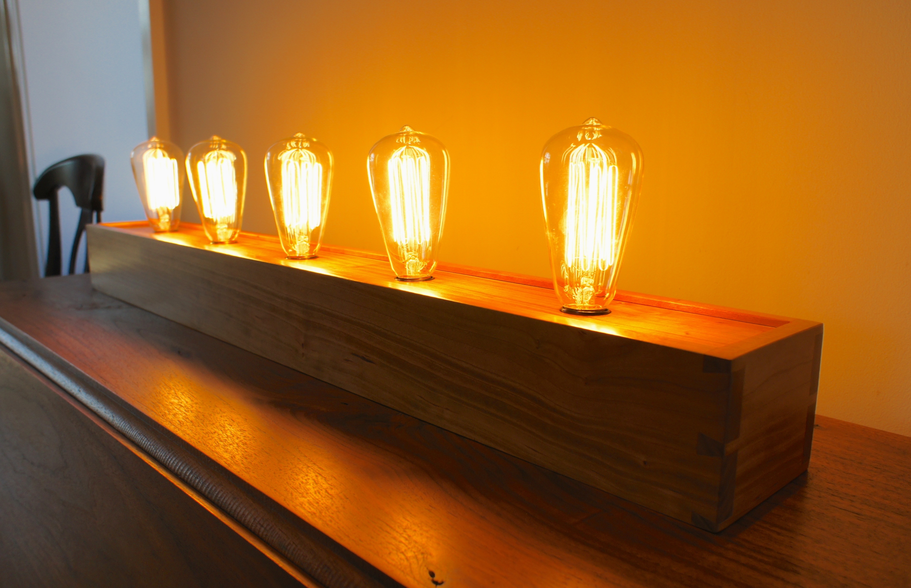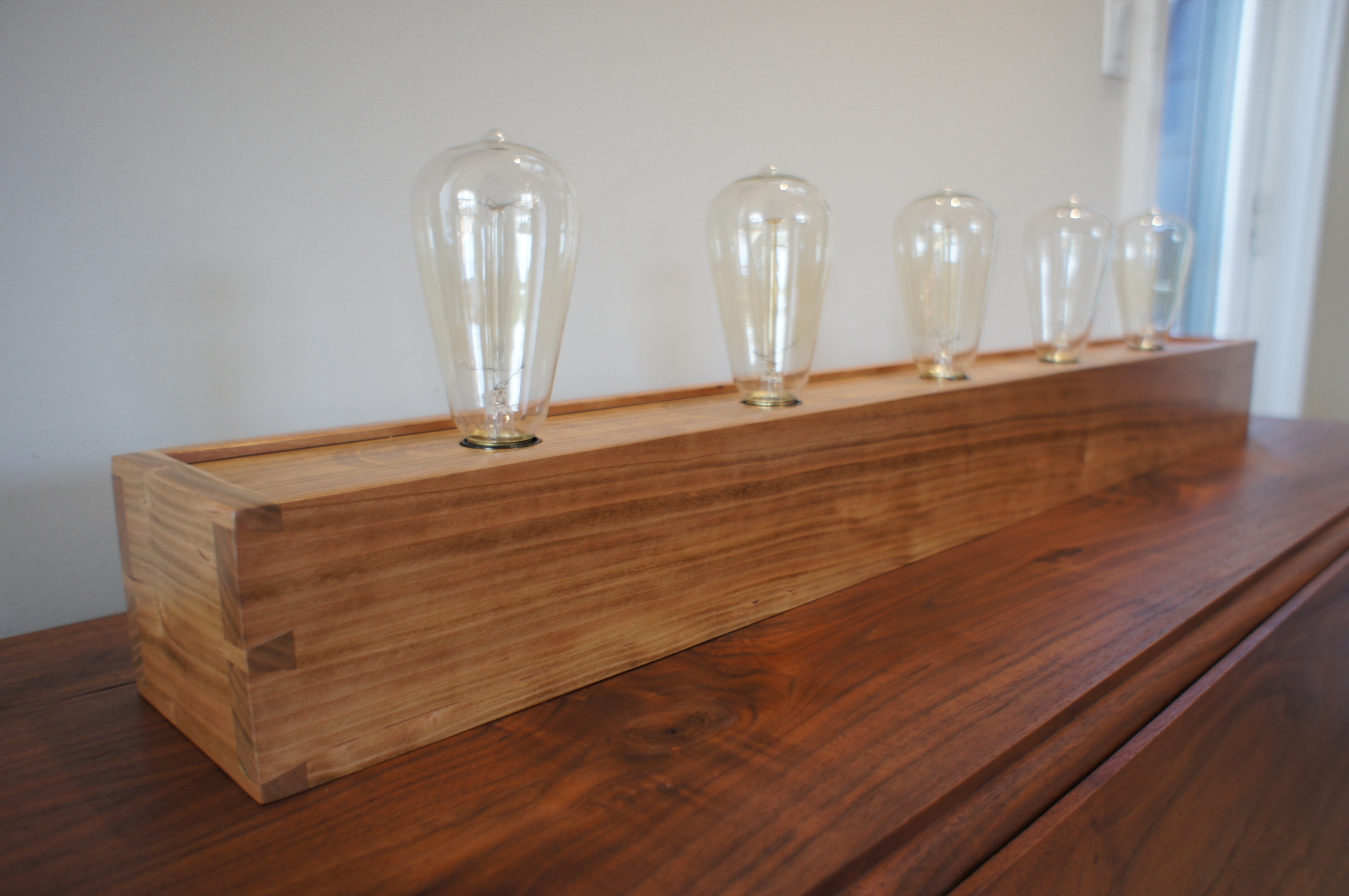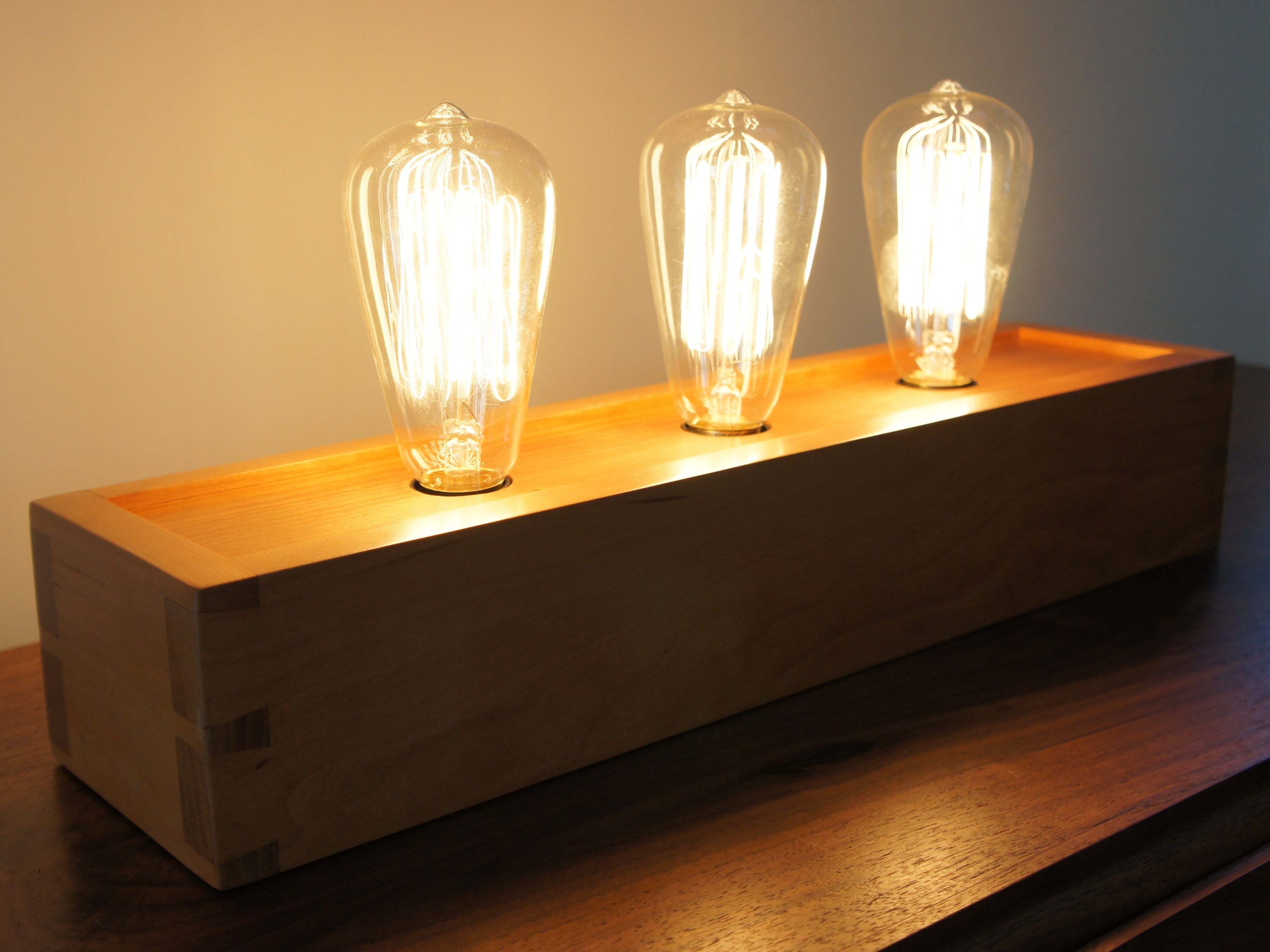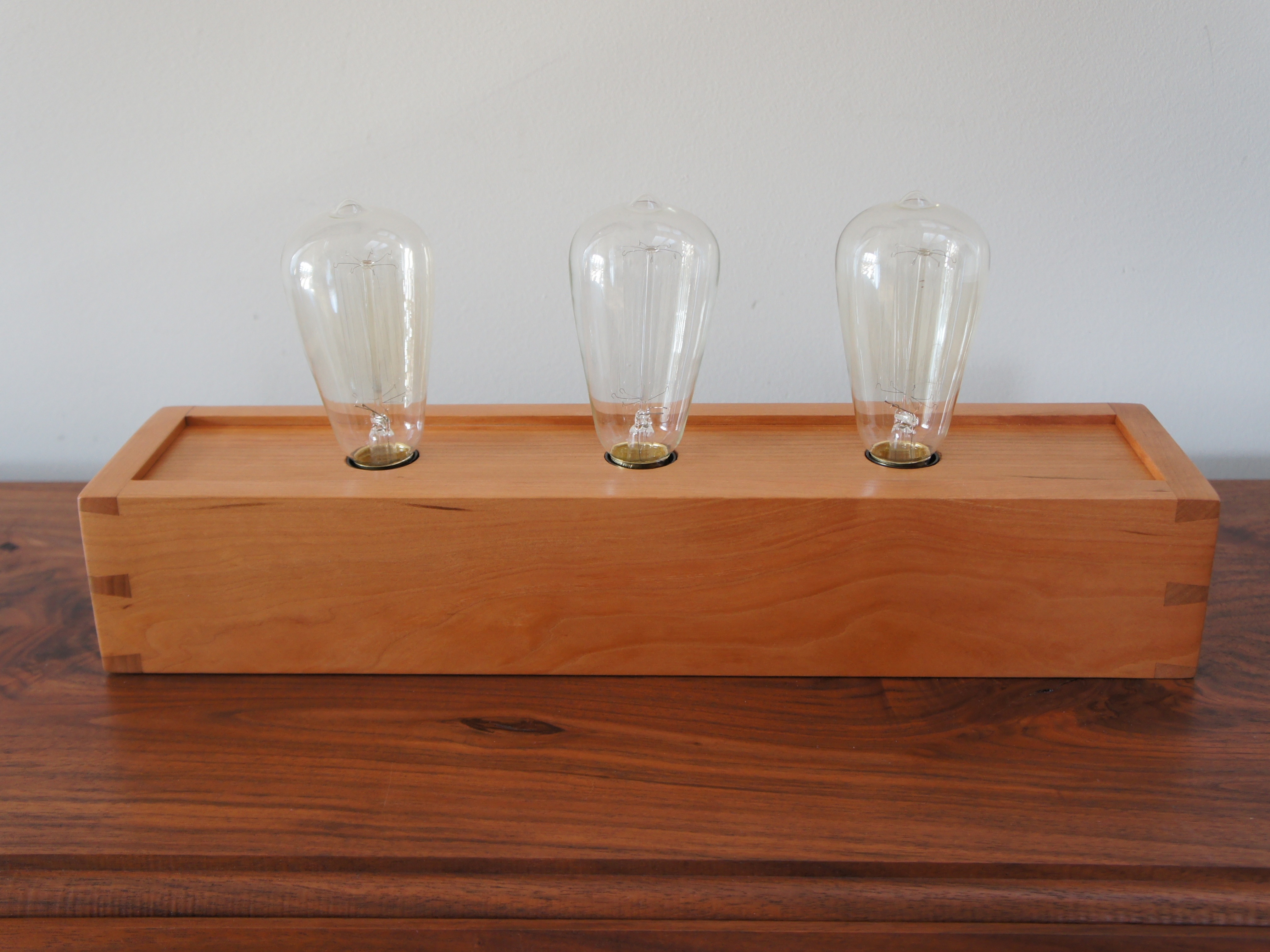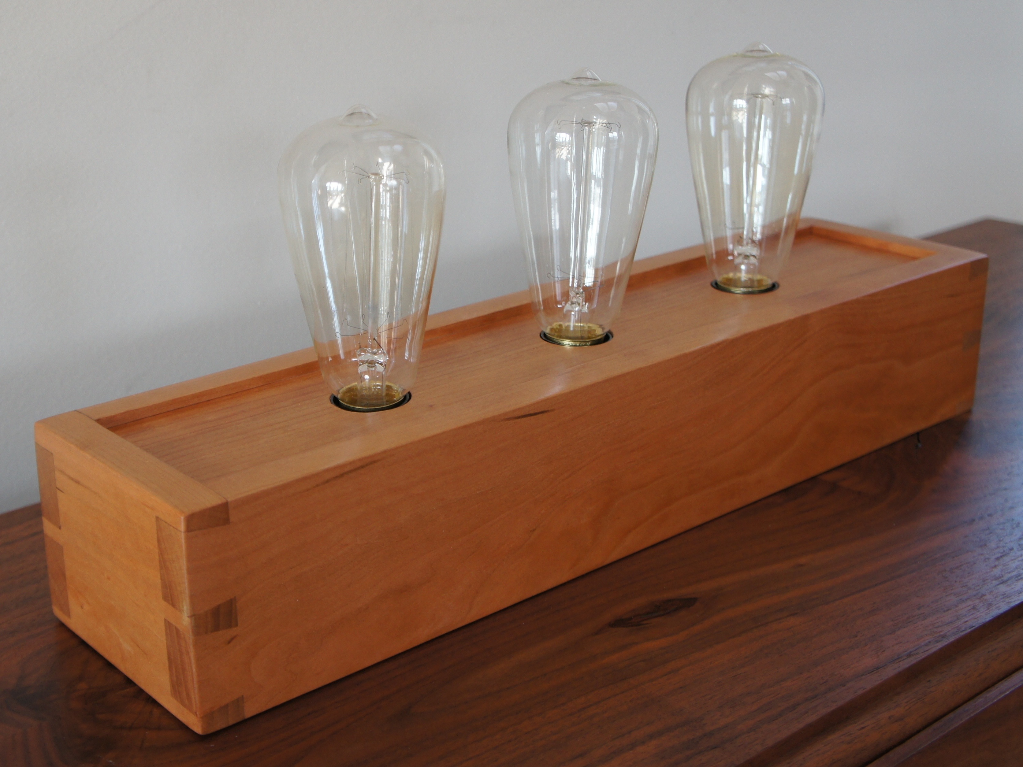 Finished up the cherry Edison lamp. As mentioned before, I made this one out of reclaimed lumber from a cherry table top. This isn’t reclaimed in the sense that it was a table that was hundreds of years old. But it does have history relative to my shop. It was the first table that I made. The lumber was purchased from the hobby shop through the navy exchange system. It was probably built around 1998. 14 years later and it has a new life.