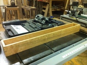 It is big enough though that I needed to use some of my standard stock (I like to build these out of leftover lumber or from some repurposed lumber). So no interesting lumber story to go along with this piece. I was however able to get all of the pieces out of one piece of lumber. It may not sound like a big deal, but by getting all of the lumber from one board I don’t really have to worry about the cherry matching in tone. Prior to planing the box pieces to thickness, I was able to resaw the stock for the 1/4″ thick top. This resulted in the box pieces being a fraction of an inch thinner than I usually build, but it definitely doesn’t ruin the look (it actually gives me some more options when it comes to the dovetails).