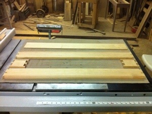 In the 2 photos below you can see my initial dry fit and all of the pieces awaiting the initial glue-up. I should be sanding up and working on the wiring on the next shop trip.