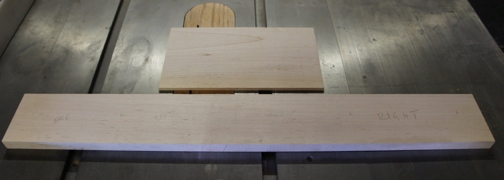 Started today to build a new single bulb Edison lamp. This one will be a little unique. It’s still going to be square still, but this one will approach 6.5″ square. In theory this isn’t a big deal, but the challenge is related to my bandsaw. I have a pretty nice bandsaw, but it’s resaw capacity is just shy of 6″. In order to make the top of the lamp, I need to resaw a board to get the 1/4″ thick top board. Technically I could just plane a board all of the way down the the right thickness, but that just seems like a complete waste of lumber. Fortunately, I was able to make this work by keeping the sides of the lamp a little thicker than normal. The thinking is that the outside dimension of the lamp is 6.5″ square. If you use lumber that is 3/4″ thick, then the interior dimension of the lamp is only 5″ (6.5″ – .75″ -.75″). From there you need to add back about 5/16″, so that it will be able to rest inside the groove for the top.